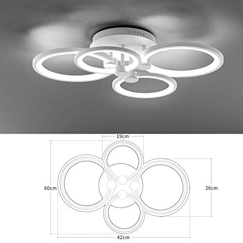 WAYRANK Lampadario Led Moderno, Dimmerabile Plafoniera LED con Telecomando, 48W 4 Anello Lampadari Soffitto per Camere da Letto Corridoio Ufficio, 3000K-6500K