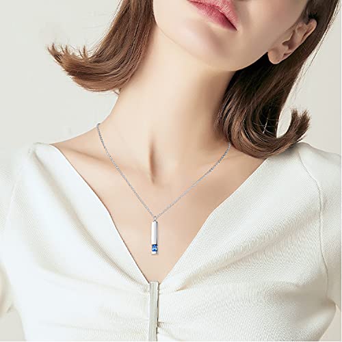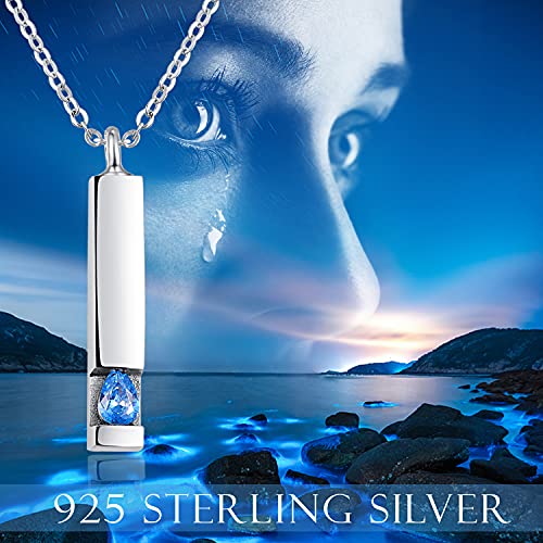 Collane con urna per ceneri: realizzate in argento sterling 925, superficie liscia lucidata, senza nichel e senza piombo. Adatto per pelli sensibili. La superficie liscia del ciondolo lungo in argento con zirconi blu a forma di goccia si adatta a tutti i tuoi vestiti