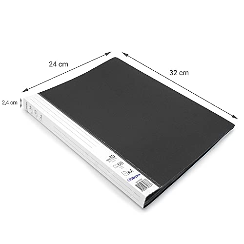 Waytex 931332N - Cartellina portadocumenti formato A4, 60 fogli, in polipropilene opaco, 30 tasche trasparenti, colore: Nero