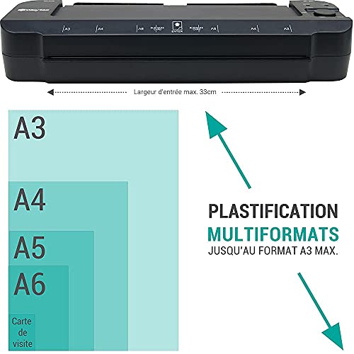 ✔️ 【IDEALE 】 Facile e veloce - Plastifica documenti importanti, presentazioni e creazioni fino al formato A3. Compatibile con tutti i modelli e le marche di buste di plastificazione fino a 250 micron di spessore (2 x 125 micron)