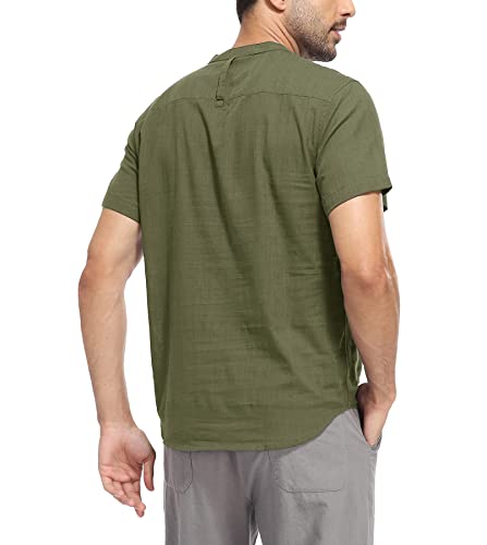WAZZAP Camicia Uomo Manica Corta Lino di Cotone Estate Casual Spiaggia Hippie Henley Shirt con Bottoni