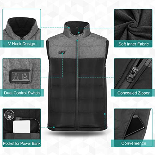 Wchiuoe Giubbotto riscaldato Elettrico, Doppio Interruttore di Comando Ricarica Giacca riscaldata Leggera con 4 Zone di Riscaldamento e 3 impostazioni di Temperatura per Scaldamuscoli(L)