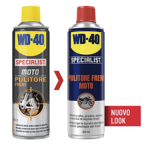 WD-40 Specialist Moto - Pulitore Freni Spray - 500 ml & Prodotto Multifunzione Lubrificante Spray Con Sistema Doppia Posizione, 500 ml, Bianco