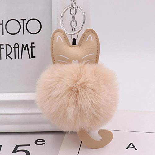 WDam Portachiavi con Palla di Pelo Carino Gatto Pompon Morbido con Coda di Animale Palla per Capelli Portachiavi per Auto Accessori per Borse per Auto da Donna Portachiavi Regalo per la Mamma, Cachi