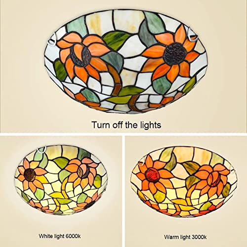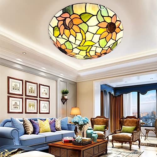 WDBZTJ Lampada da Soffitto Tiffany, Plafoniera LED Vetro Colorato, Lampadari Lampada a Sospensione Cucina Con Paralume A Forma Di Fiore Di Sole Per Camera Da Letto, Soggiorno, Corridoio, Bagno,50cm
