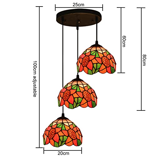 WDBZTJ Lampadari in Stile Tiffany Con Fiore Di Sole, Lampada A Sospensione in Vetro Colorato Da 8 Pollici, Plafoniera E27 Regolabile in Altezza per Cucina Sala da Pranzo,3 light 25cm
