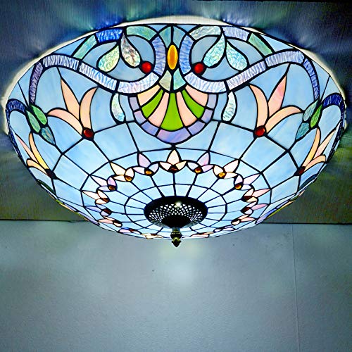 WDBZTJ Plafoniera in Stile Tiffany, Lampada da Soffitto Vintage in Vetro Colorato Blu, Lampada A Sospensione Moderna per Soggiorno Camera da Letto Sala da Pranzo [Classe Energetica A ++],50cm