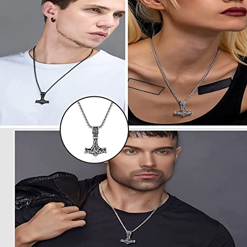 WDDS Collana con Amuleto da Uomo, La Collana del Martello di Thor, Collana Vichingo, Catena del Martello in Acciaio Inossidabile con Catena, Regalo Ragazzo (Argento), 60 cm/23,6 Pollici