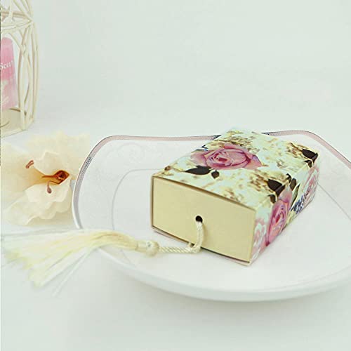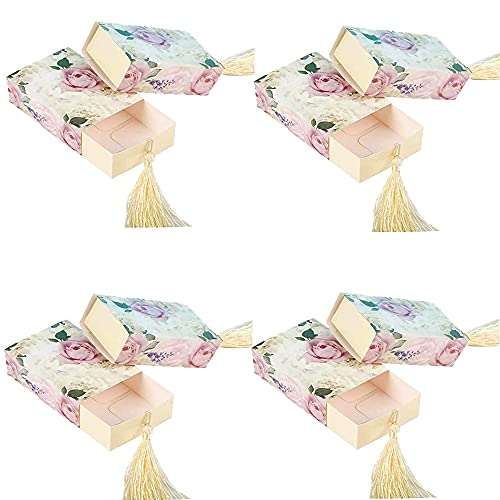 Design perfetto: la confezione regalo fiore è progettata con forma a cassetto, stampata con fiori e nappe, aggiungendo piccoli e bellissimi dettagli alla confezione regalo. Queste scatole regalo squisite renderanno i tuoi regali più delicati, sinceri ed eleganti.
