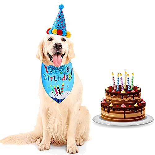 WDEC Set di Bandana per Cani di Compleanno con Bandane, 10 numeri, 1 cappello, Bandane di Compleanno per Cani, Compleanno Cane Regalo Pet Cucciolo Gatto Decorazioni di Compleanno (blu)