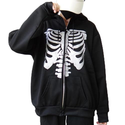 Wdhybwcx Felpa con Scheletro Gotico Felpa Oversize con Cappuccio da Uomo Autunno con Cerniera a Maniche Lunghe Cappotto Top Maschile Anni '90 Abiti Vintage Grunge-Giallo, S