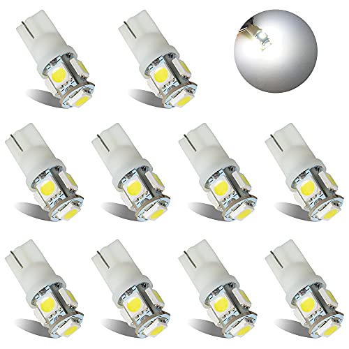 Wdtecker 10 X T10 LED auto lampada 194 168 5050 W5 W 5 SMD 12 V per Interior segnale, Cupola, Tronco, cruscotto, luce di posizione bianco