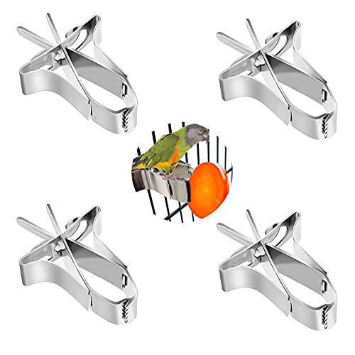 WDZYRM Clip per Mangiatoia per Uccelli Pappagallo Frutta Feeder Portafrutta per Uccelli Porta Cibo Acciaio Inossidabile Pappagallo Frutta per Uccelli Porta Verdura Gabbia Foraggiamento Frutta 4 Pezzi