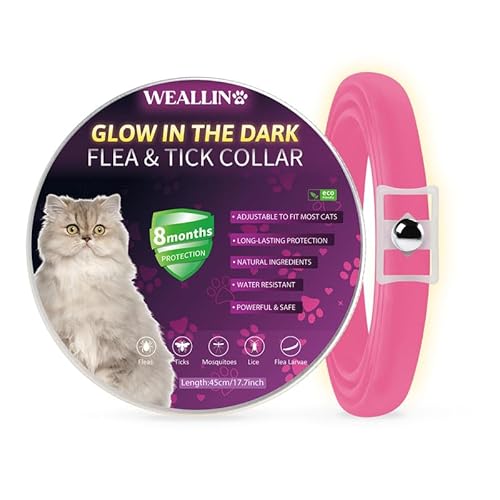WEALLIN Si Illumina al Buio Collare Antipulci per Gatti, Collare Antiparassitario per Gatti con Protezione Efficace di 8 Mesi, Impermeabile Regolabile Collare Antipulci Gatto, Rosa(1 Pc)