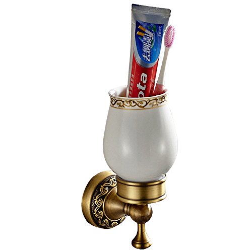 Weare Home - Set da bagno retro solide rame e ceramica singolarmente Spazzolino da denti titolare, minimal con incisioni Bronzo rivestimento montaggio a parete Halt Bar Accessori bagno accessori per il bagno parete per cucina