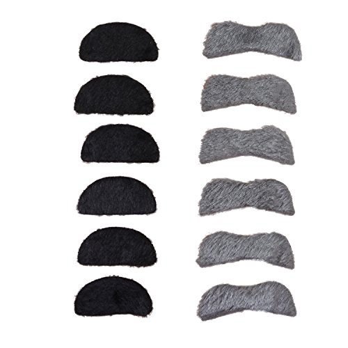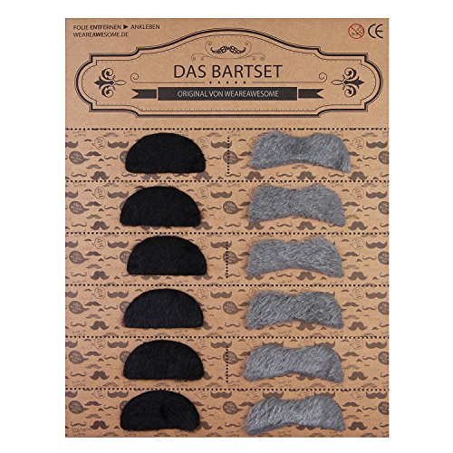 WeAreAwesome Baffi Set B (12 Pezzi) Mix di Barbe finte Nere da incollare