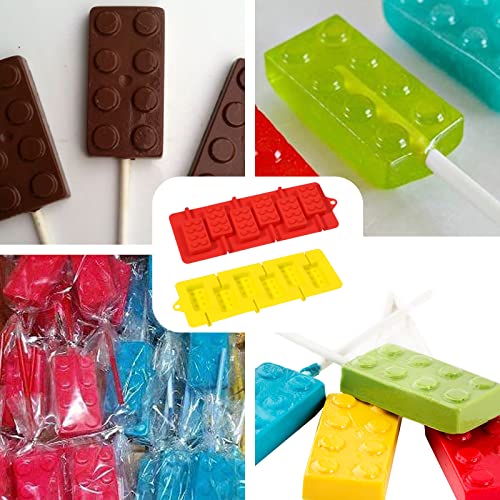 Webake Stampi in silicone per lecca-lecca, 2 pezzi, mattoncini da costruzione, per caramelle, con 100 bastoncini di carta