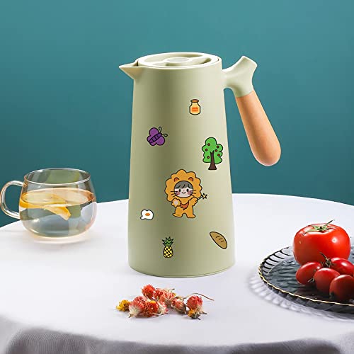 Webao Thermos da 1 l con manico in legno, inserto in vetro, chiusura Quick Tip, caraffa termica per caffè, tè e acqua, verde chiaro