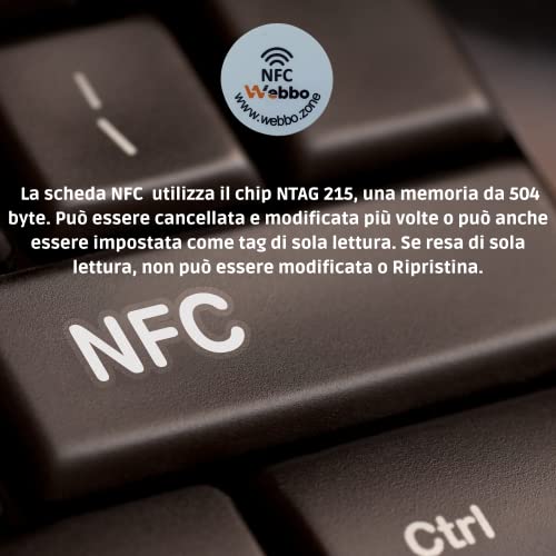 Webbo - Nxp - NTAG 215 ntag 215 TAG NFC chip Adesivo, 492 Bytes,13.56MHz Tag ISO 14443-3A, 25mm riscrivibile, 8 Pezzi Adesivo 3M