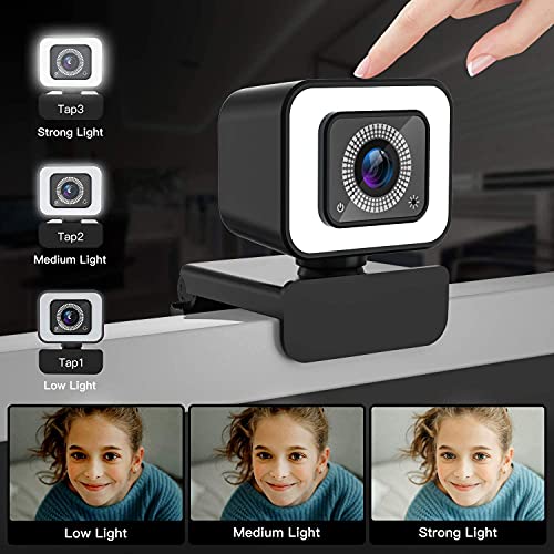 HD Webcam per PC,1080P Nativo Webcam PC con Microfono,Con Luce Anulare Regolabile,2.0USB Plug & Play Accessori Computer Ideale Per Videochiamate Registrazione, Conferenze Web, Live Streaming, Zoom