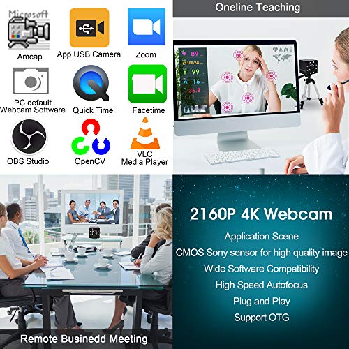 Aggiornamento di latest 4K Ultra HD 30 FPS UHD WEBCAM: ● Questa webcam USB ha un sensore di immagine CMOS a colori Sony IMX415 4K Pixel Color CMOS risoluzione massima 3840 (H) x 2160 (V) e CCD full-frame acquisition technologywhich can display chiaro la pictuic pictuic re. ● La qualità della cornice 4K 30 rende il video più stabile e liscio, nessun rumore e immagini rotte.