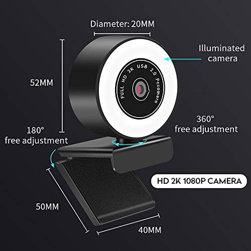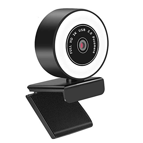 Webcam con Luce Ad Anello, Webcam 2K Pc con Microfono, Webcam HD con Luce Anulare e Microfono Integrato per La Riduzione del Rumore, Fotocamera USB con Luminosità Regolabile a 3 Livelli