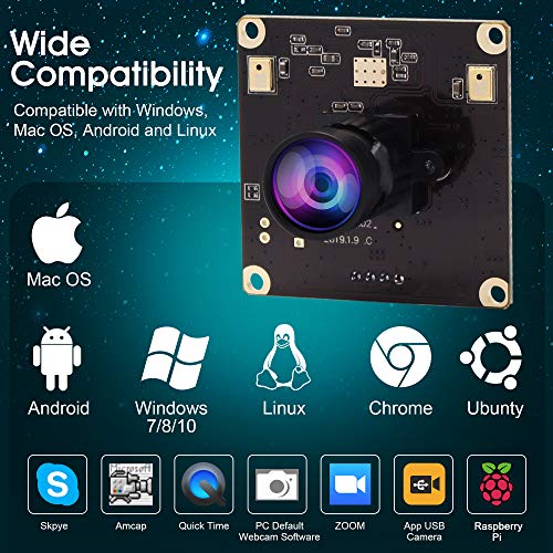 Versatile compatibilità con software e sistemi multipli professionali come fotocamera web USB ELP, la compatibilità è molto ampia per software Major come Skype, Zoom, Facetime, Facebook, YouTube, OBS, Amcap, VLC, QuickTime e molto altro ancora. La webcam ELP è adatta per molti sistemi operativi come well, tra cui Windows XP/2000/7/8/10, Mac OS X, Android, Liunx, Raspberry Pi ecc, che è alternativo per diverse esigenze