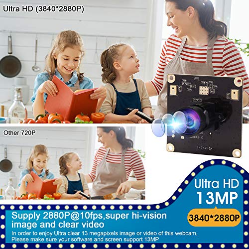 Fotocamera USB ELP 13 MP Ultra HD, in buone condizioni di luce, con sensore di immagine CMOS Sony all'interno, è possibile ottenere video 4 K 2880P a 10 fps (solo contatto con schermo LCD 4 K), registrazione video Full HD 1080P a 30 fps (solo contatto con schermo LCD 1080P e monitor). Perfetto per personali. /Industrial/Industrial/Business Project, utilizzare con lampone o altri computer integrati: macchina industriale, ATM, conference web, monitoraggio di sicurezza, project machin