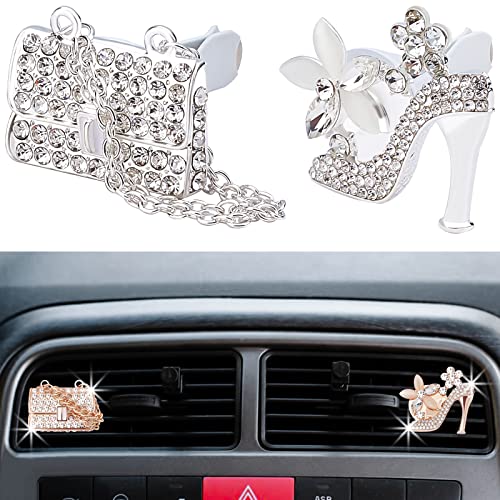 WEBEEDY 4 cristallo clip per bocchetta d'aria per auto, 2 colori con cristallo tacco alto scarpe e borsa strass clip per auto, deodorante per auto con morbido cuscinetto aromatico