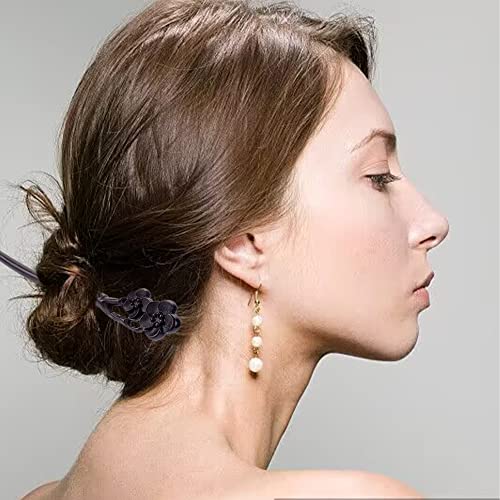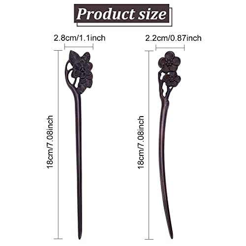 Design vintage: due diversi fiori intagliati (prugna, loto), design cinese, classico e puduro. I bordi lisci e i bastoncini curvi lo rendono facile da scivolare nei capelli senza danni, semplici bastoncini per capelli ti renderanno affascinante ed elegante