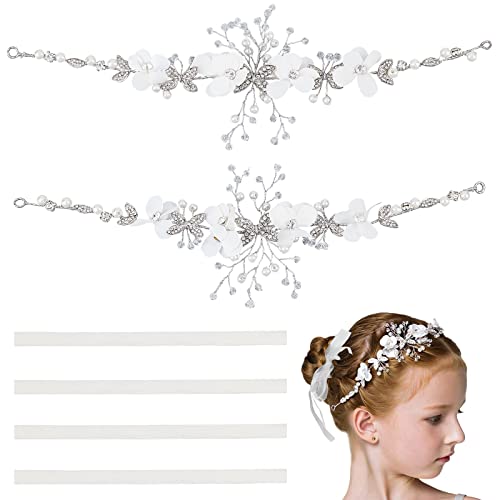 WEBEEDY 2 Pezzi Copricapo da Ragazza di Fiori, Accessori per Copricapo da Sposa, Fascia per Capelli con Perle di Cristallo, Accessorio per Capelli diadema per la Damigella d'Onore della Sposa