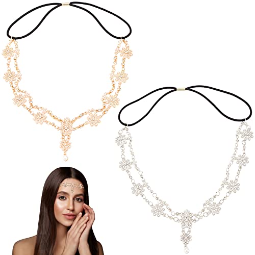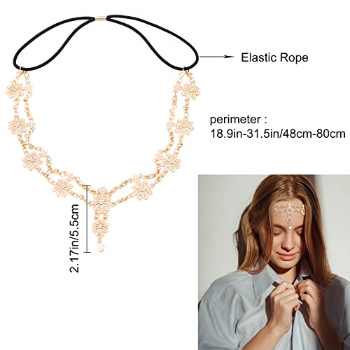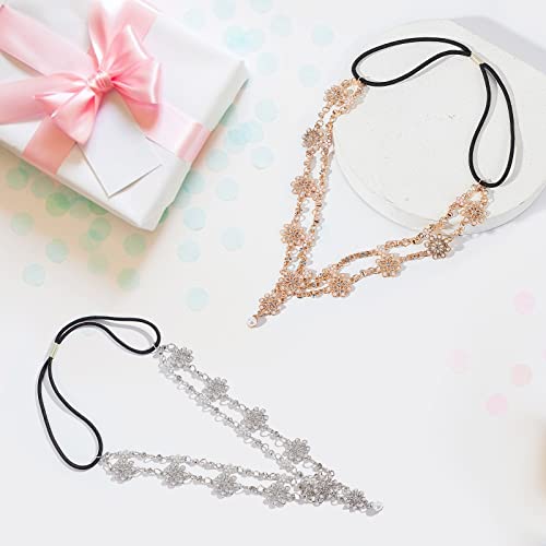 WEBEEDY 2 Pezzo di Fascia Elastica con Perline di Strass, Catena per Capelli da Sposa, Gioielli per Capelli, Accessori per Gioielli per Capelli da Donna da Donna, Festival Holloween Costume Accessori