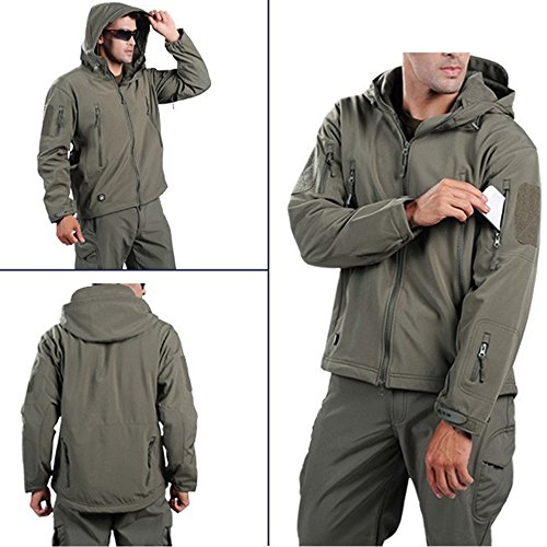 Webetop Giacche Uomo Softshell Cappuccio Tattico Giacca Impermeabile per Sport Esterno, Verde XL Taglia