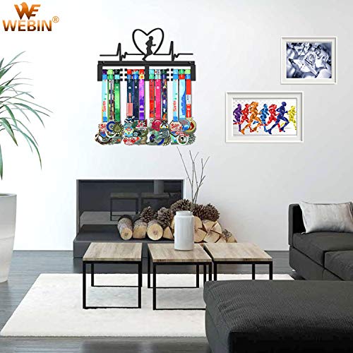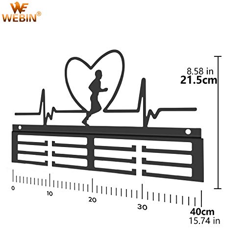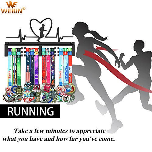 WEBIN Uomo Runner Porta Medaglie Gancio,Nero Acciaio Metallo,Medagliere da Parete Oltre 50 Medaglie