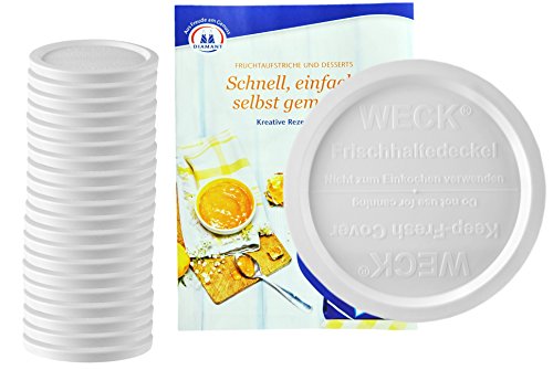 Contenuto della confezione: 20 coperchi salvafreschezza originali Weck per bordo rotondo 100 + 1 ricettario gratis