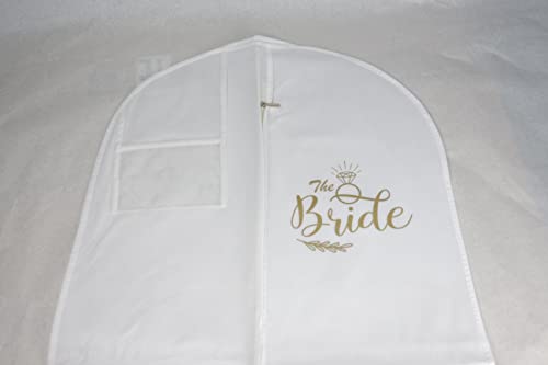 Wedcova Borsa per abiti da sposa, da appendere, per abiti da sposa, protezione da viaggio a lunghezza intera, con cerniera, da donna, bianca con logo The Bride