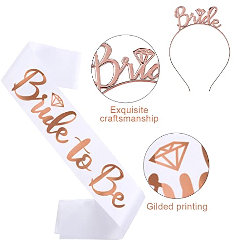 【Set di accessori completi】Questo set di accessori per addio al nubilato include un velo bianco con pettine, una fascia da sposa e una tiara per capelli da sposa in oro rosa.