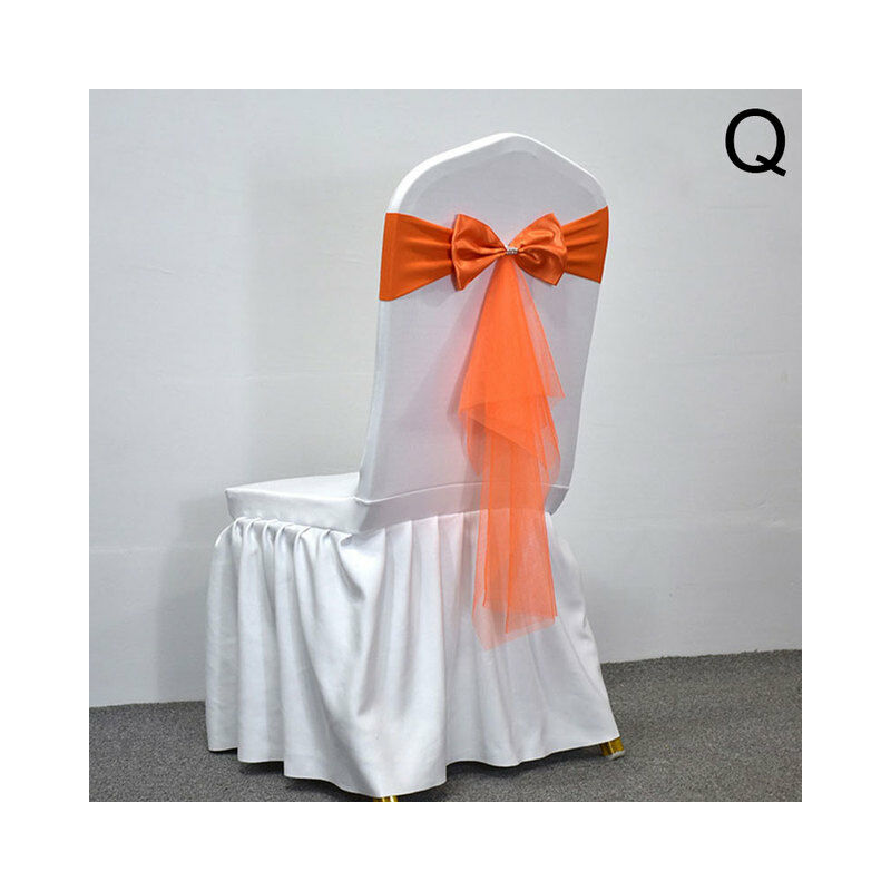 Product name: Chair band Material: Polyester Size: 12*35cm Color: Gold,Silver,Red,Coffee,Royal Blue,Green,Pink,Purple etc. Features: 1. Comfortable hand feeling;