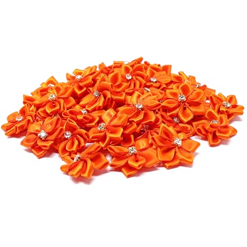 Wedding Touches, fiorellini in nastro di raso di colore arancione, con centro in strass (25 mm) Orange