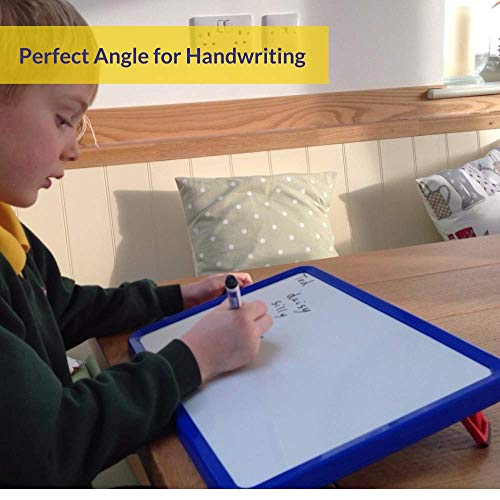Eccellente aiuto didattico o per la dislessia o giocattolo educativo. Usalo piatto o angolato. Sollevare la lavagna utilizzando le gambe in posizione verticale o orizzontale crea una superficie di scrittura inclinata che è utile per aiutare i bambini a praticare la scrittura a mano.