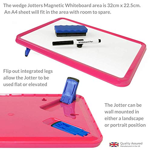 Wedge Whiteboards Lavagna a Secco A4, Lavagna Magnetica Bianca con Piedini per Bambini con 4 Penne e Scheda in Gomma (Rosa)