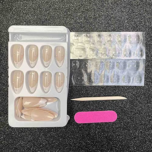 Queste unghie corte e appuntite con perle bianche a goccia francese, sono lucide e sembrano anche realistiche. Quando vai a una festa, prendi queste unghie finte, ti renderà più luminoso e più affascinante.
