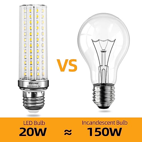 WEDNA LED E27 Lampadina 4000K, 20W Led Lampade Luce Naturale, 2565LM, Equivalenti a 150W, Non Dimmerabile, AC 220V, Risparmio Energetico Mais Lampadina, Confezione da 4