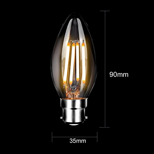 Wedna B22 - Lampadina a candela con attacco a baionetta a LED, con filamento a candela, 4 W, C35, in vetro trasparente, equivalente a 40 W, luce bianca calda, 2700 K, non dimmerabile