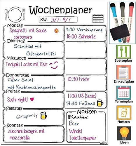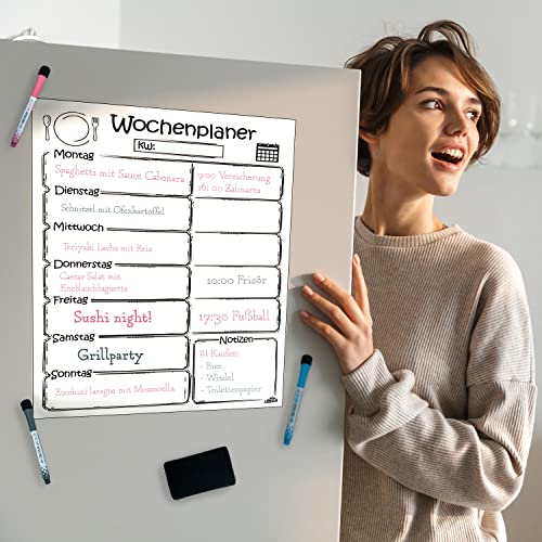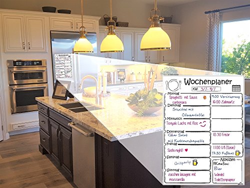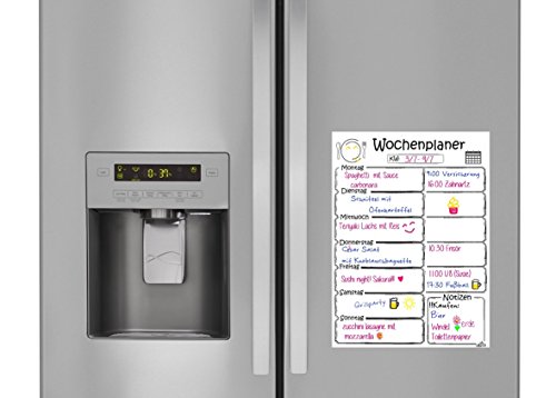 Pratico: menù, agenda e appunti su una lavagna magnetica. La nostra grande lavagna magnetica per frigorifero vi aiuta a creare il piano settimanale perfetto per la vostra famiglia e a tenere traccia di importanti appuntamenti. Anche per ufficio, scuola, Kita, pratica ecc. Adatto
