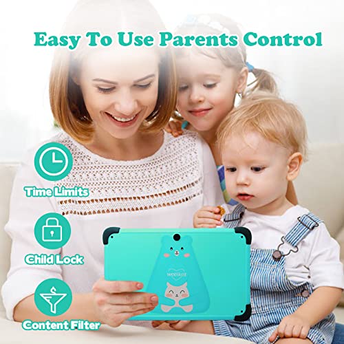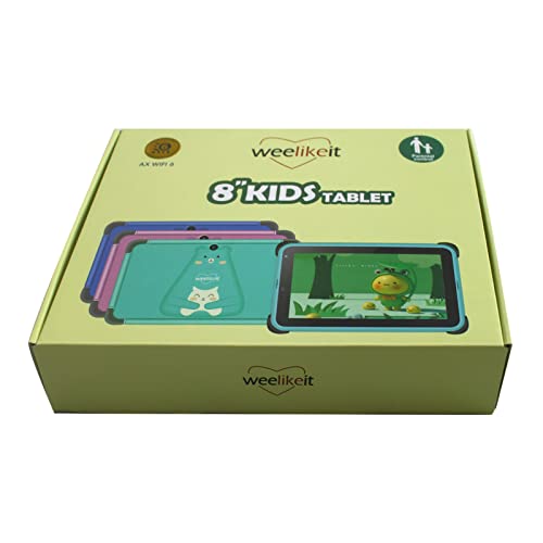 Weelikeit Tablet per bambini, Android 13 Tablet per bambini da 8 pollici con AX WiFi6,2+32GB di memoria, controllo genitori, app per bambini installata, 4500 mAh, Bluetooth, Google Play(verde)