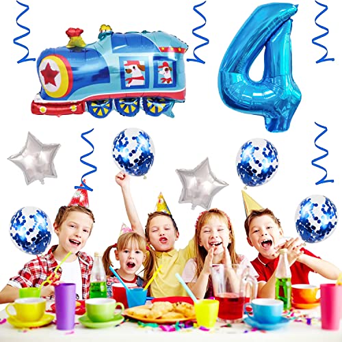 Weenkeey 4 anni treno compleanno palloncini treno palloncino 4 anni compleanno decorazione treno gigante numero 4 Mylar palloncino per ferrovia festa ragazzi compleanno decorazione - Blu