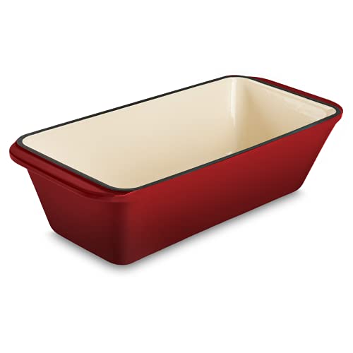 WEES-CK Teglia per pane in ghisa smaltata - ideale come teglia per cuocere il pane, tortiera, casseruola e arrosti, adatta a tutti i tipi di fornelli e lavabile in lavastoviglie (Cherry)