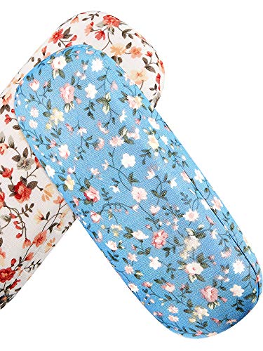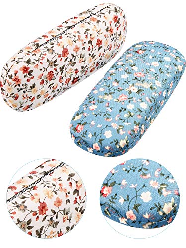 Weewooday 2 Pezzi Case di Occhiali Scatola Custodia Portatile Rigido Occhiali Case Tessuti Floreale Astucci Occhiali da Vista Case Occhiali Scatola per Occhiali da Vista (Bianco, Blu)