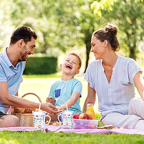 Dimensioni: Il calibro è di 9 cm, l'altezza è di 11,3 cm, la capacità è di 350 ml e il manico è abbastanza largo per bambini e neonati, adatto per tutti i tipi di bambini e ragazzi. (Nota: La copertura a prova di perdite non è adatta alle alte temperature. La copertura a prova di perdite deve essere rimossa prima di riscaldare)